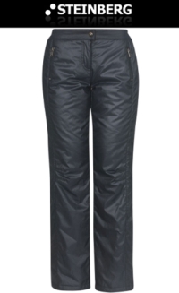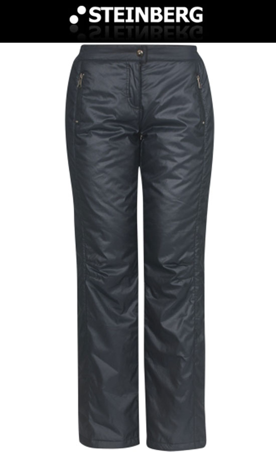 Утепленные брюки на синтепоне на притачном поясе, с застежкой на молнию и кнопку. Широкие лампасы простеганы декоративной строчкой, образующей цветочный орнамент. Резинка выполнена в средней части пояса спинки, что обеспечивает толерантность между размерами.